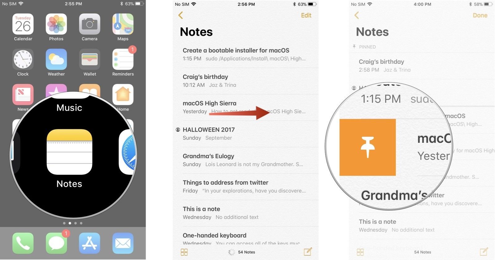 Как прикрепить заметку к началу списка в приложении Notes на iPhone и iPad в iOS 11