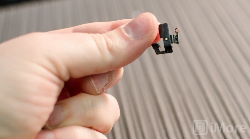 - Используйте свой пинцет или инструмент для подглядывания осторожно отсоединить микрофон с шумоподавлением от верхней рамки. Делать не попытайтесь полностью удалить его, так как он подключен к кабелю наушников. Вы только захотите ослабить это достаточно, чтобы клей полностью сломался.