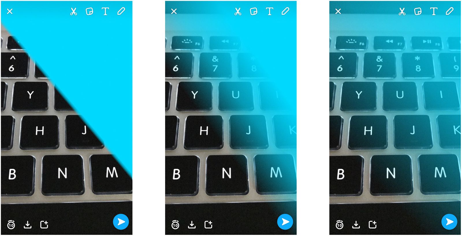 Выбор фильтров был ограничен вплоть до нескольких месяцев назад, когда Snapchat добавил в ротацию более похожий на аэрографию фильтр. Он пополнил ряды фильтра с синим оттенком, фильтра с зеленым / более темным оттенком и черно-белого фильтра для ваших снимков.