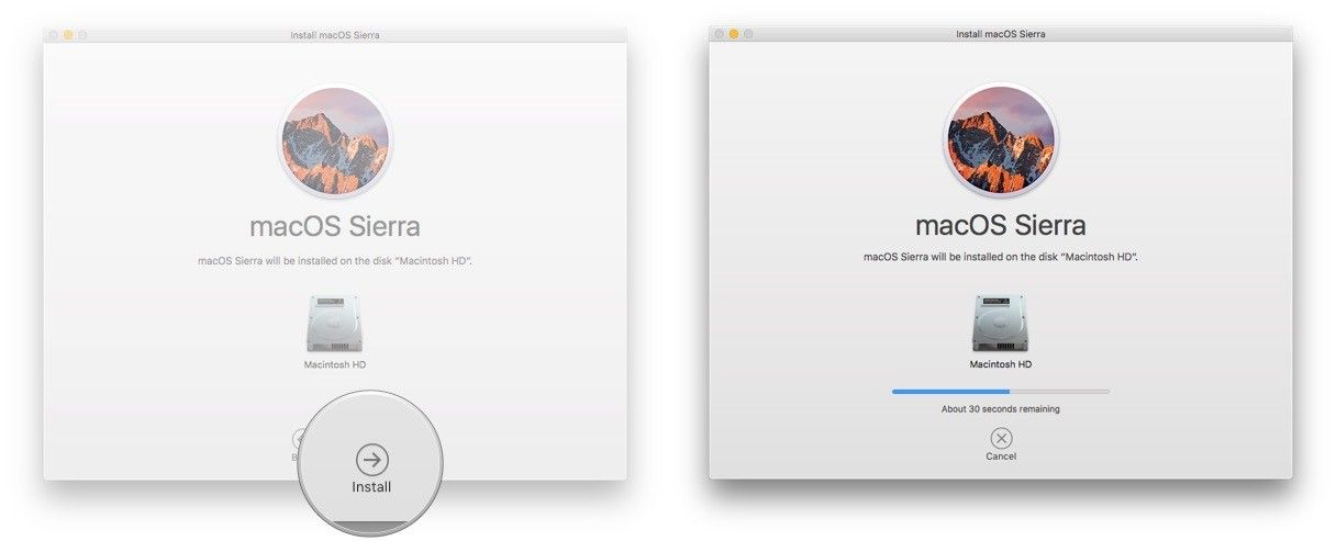 - Нажмите на Продолжить кнопка, когда запускается установщик macOS Sierra.