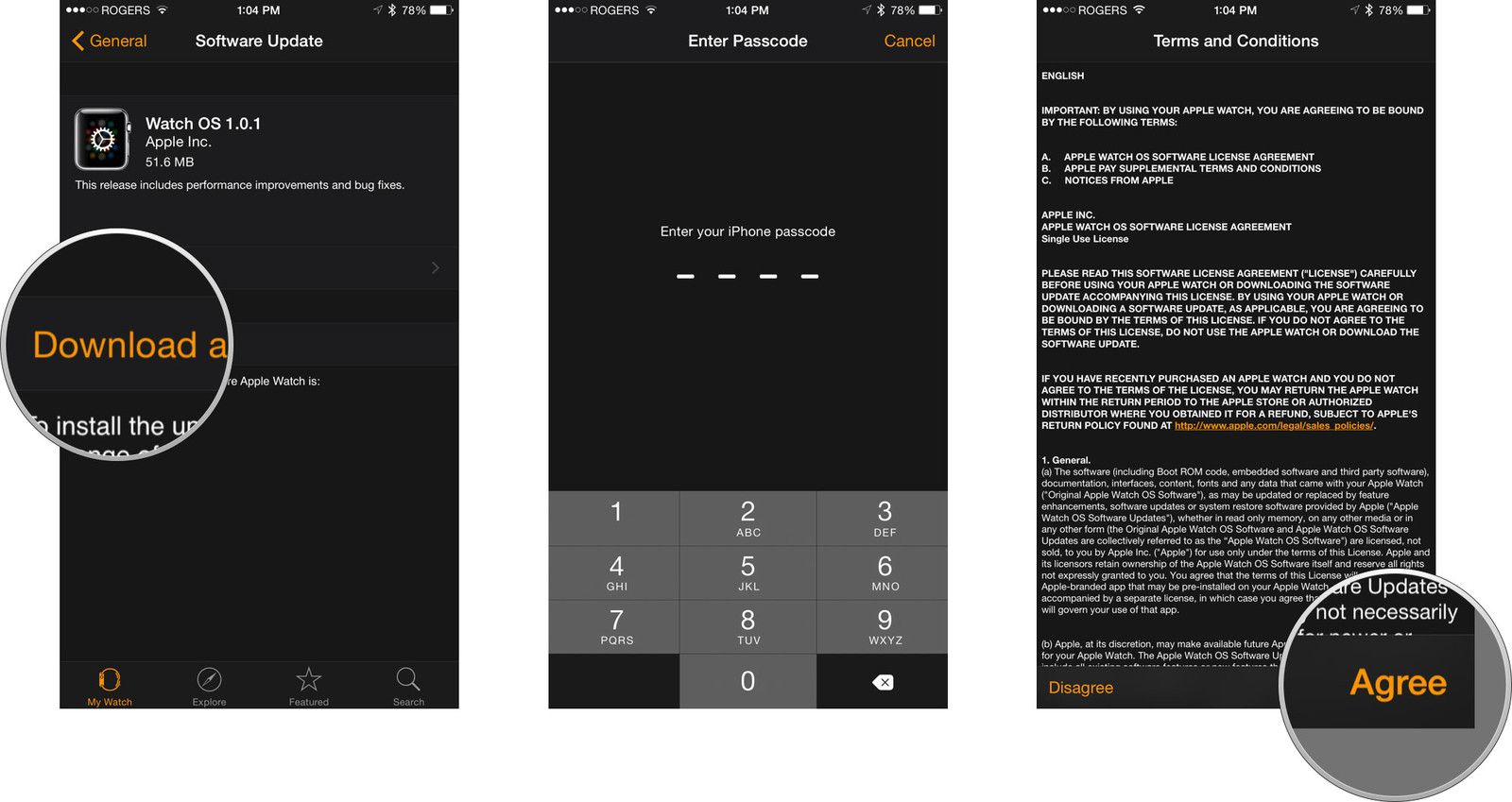 Обновление watchOS 2.0.1 будет загружено и перенесено на ваши Apple Watch, а Apple Watch перезагрузится, чтобы применить обновление. Вы можете следить за прогрессом на экране Apple Watch, и как только это будет сделано, все будет готово.