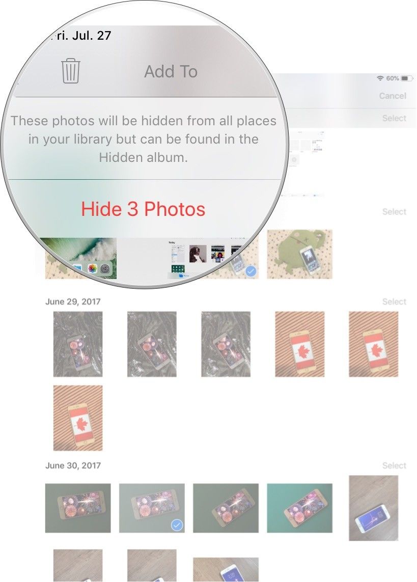 подтвердить что вы хотите, чтобы скрыть фотографии, или нажмите Отмена если вы передумаете.
