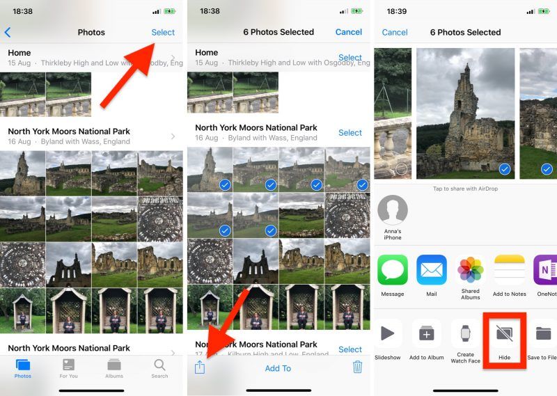 - Нажмите на фотографии, которые вы хотите скрыть.