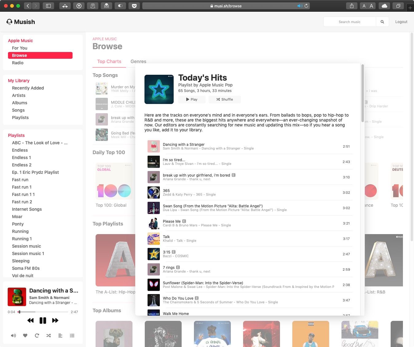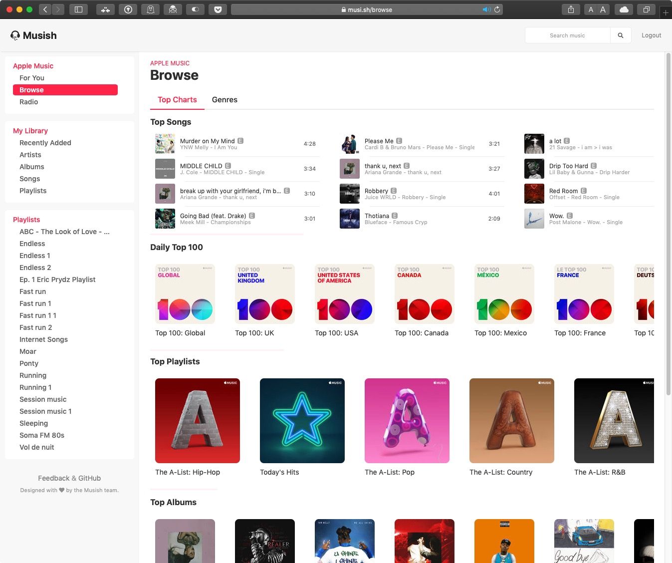 Он называется «Musish», бесплатный сторонний веб-плеер для подписчиков «Apple Music», созданный инженером-программистом Брайаном Беннеттом-Одлумом и его командой Рафаэлем Виге, Джеймсом Джарвисом и Филипом Гребовски.