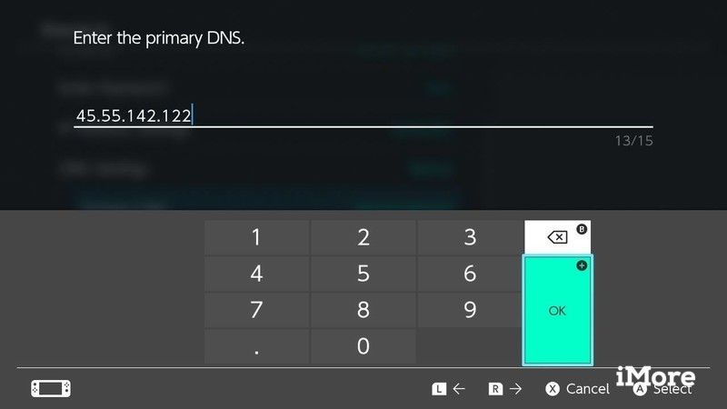 - Нажмите Основной DNS, затем используйте клавишу возврата, чтобы стереть адрес по умолчанию.