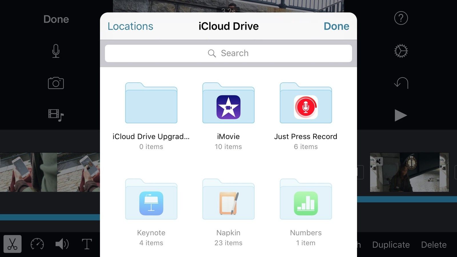 Я записал свой голос за кадром в отличном кроссплатформенном приложении Just Press Record, которое предлагает хранилище iCloud Drive для заметок и заметок на любом устройстве, с которого вы записываете: Mac, iPhone, iPad или Apple Watch. После того, как я закончил свои дубли, импортировать звук в iMovie было легко, теперь на вкладке «Аудио» появилась опция «импортировать из iCloud Drive».