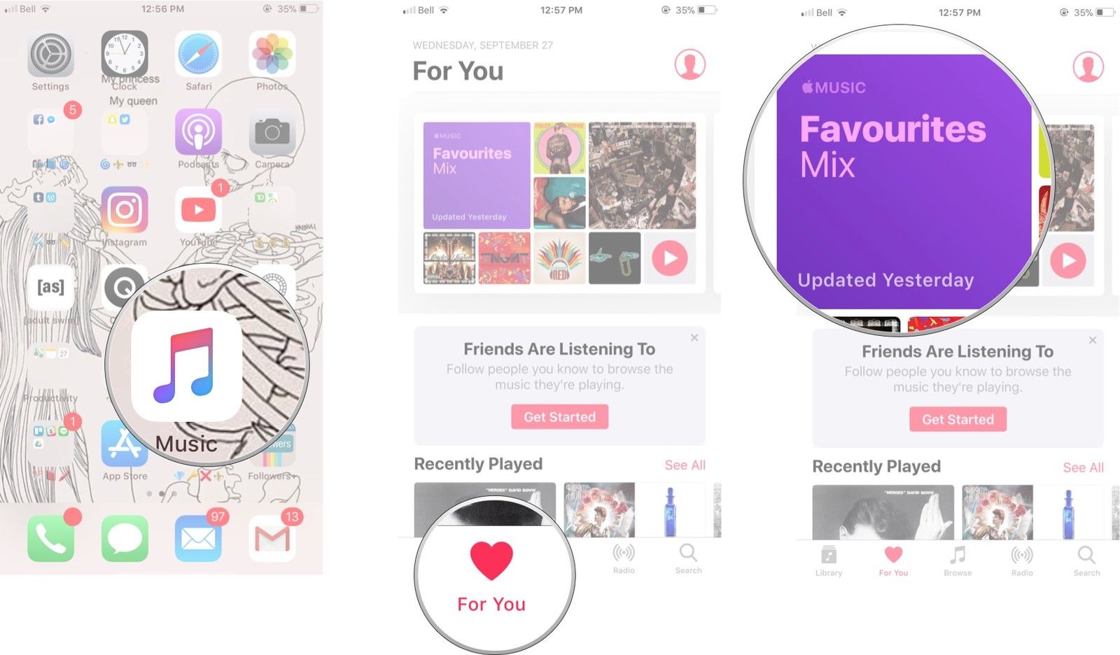- Перейдите к Для тебя.