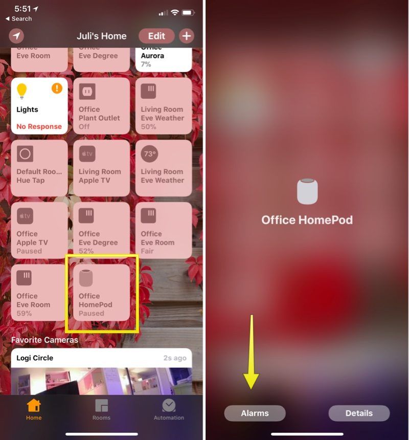 Сигналы будильника, которые вы настроили на HomePod через Siri, можно просматривать и управлять ими в приложении Home.
