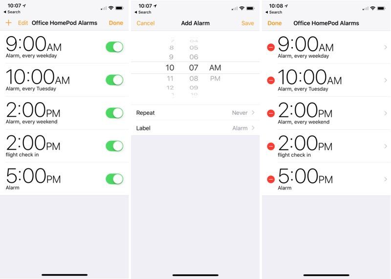 Раздел «будильник» HomePod в приложении «Домой» очень похож на раздел «Будильник» приложения «Часы» на iPhone, поэтому, если вы его использовали, он должен быть сразу знаком.Если вы нажмете кнопку «+», вы можете установить новый будильник, а если вы нажмете кнопку «Редактировать», вы сможете отредактировать или удалить существующий будильник. Нажатие на один из переключателей рядом с будильником временно отключает его.