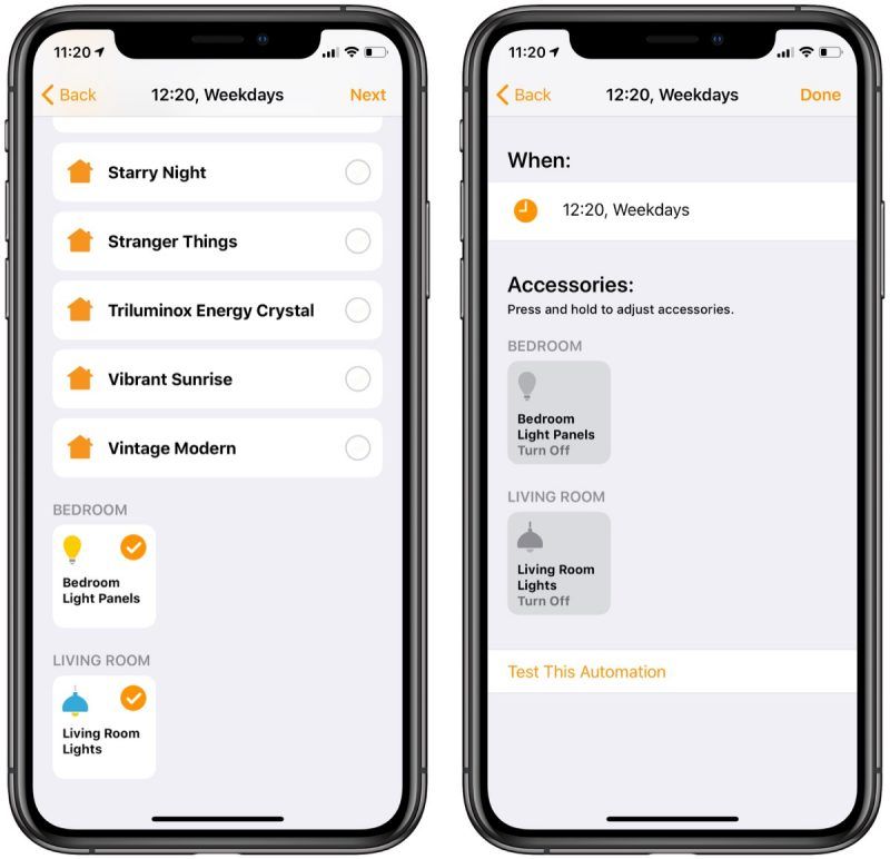 - Выберите сцены и аксессуары, которые вы хотите автоматизировать.