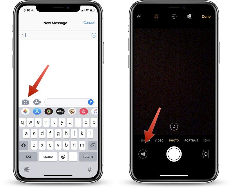 - Нажмите на значок камеры рядом с панелью чата iMessage.