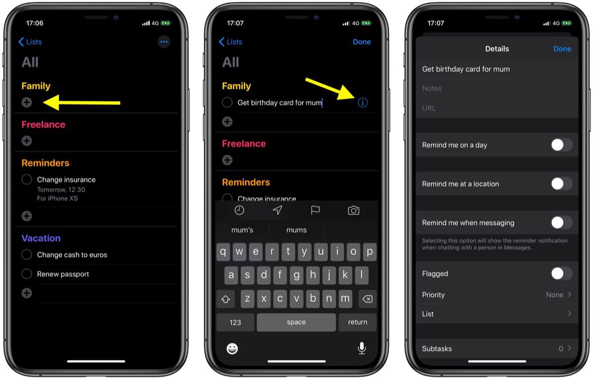 Как и в предыдущей версии напоминаний, вы можете создавать столько напоминаний, сколько считаете необходимым в новом приложении напоминаний, и добавлять их в специальные списки напоминаний для конкретных проектов.