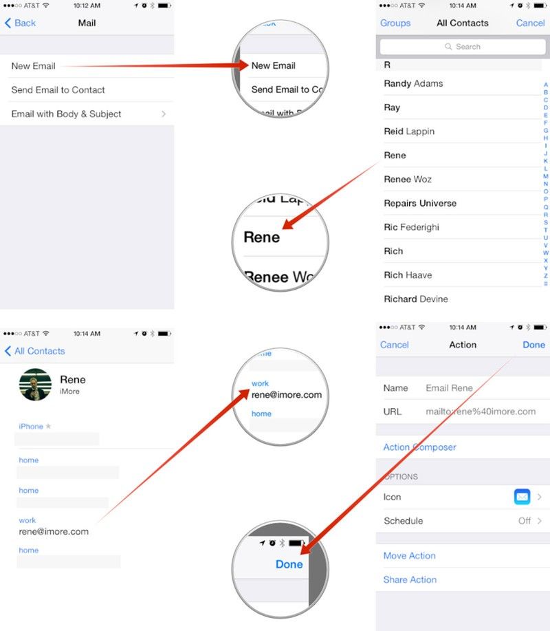 Это все, что нужно сделать. Я знаю, что у меня есть супер быстрый способ отправить электронное письмо Рене, которое требует быстрого нажатия и жеста. Очевидно, что параметры, которые вы выбираете для создания контактных действий, будут зависеть от того, что вы хотите сделать. Вы бы просто выбрали другой тип связи, такой как FaceTime, Message или что-то еще.