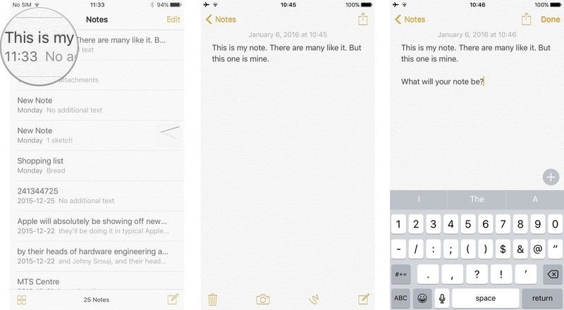 Нажмите в любом месте внутри заметки, чтобы открыть клавиатуру и начать обновление или добавление.