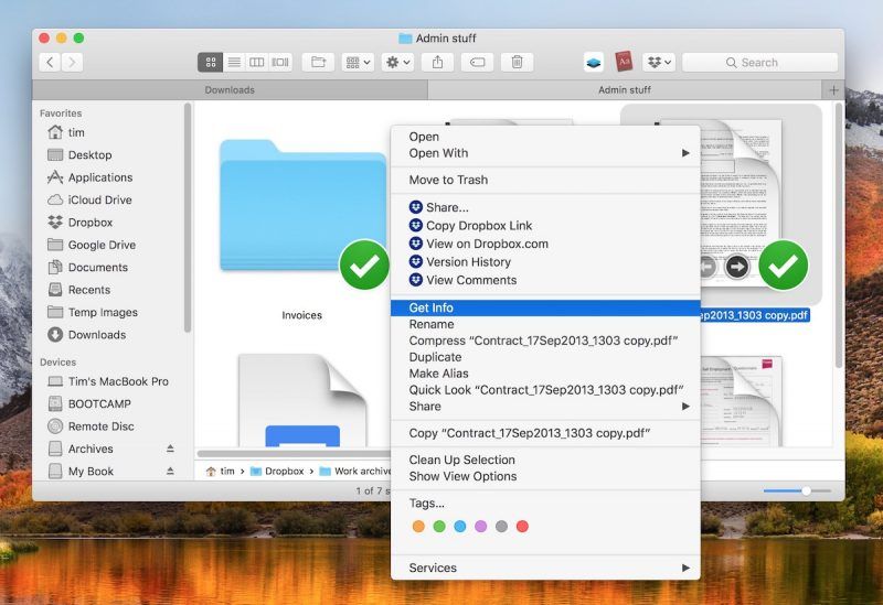 - Щелкните правой кнопкой мыши (или Ctrl-клик) файл и выберите Получить данные в контекстном раскрывающемся меню. Или щелкните файл, чтобы выбрать его и использовать Command + I сочетание клавиш для запуска Get Info.