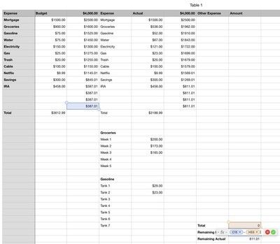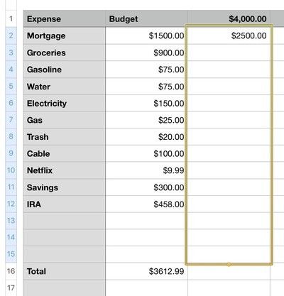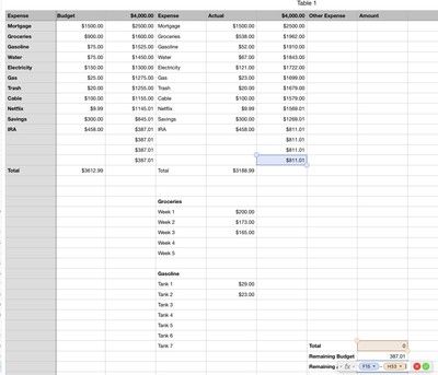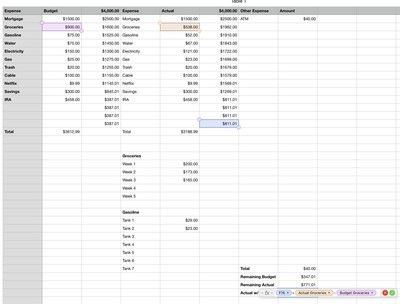Когда вы закончите, сделайте то же самое для газа. Теперь ваш бюджет будет автоматически корректироваться при вводе каждого раунда поступления продуктов и газа.
