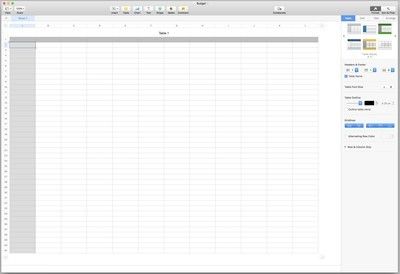 Создайте новую электронную таблицу в Numbers, затем используйте кнопки расширения в конце горизонтальной строки с буквами в верхней части листа и в нижней части вертикального пронумерованного ряда на левой стороне листа, чтобы расширить размеры листа.