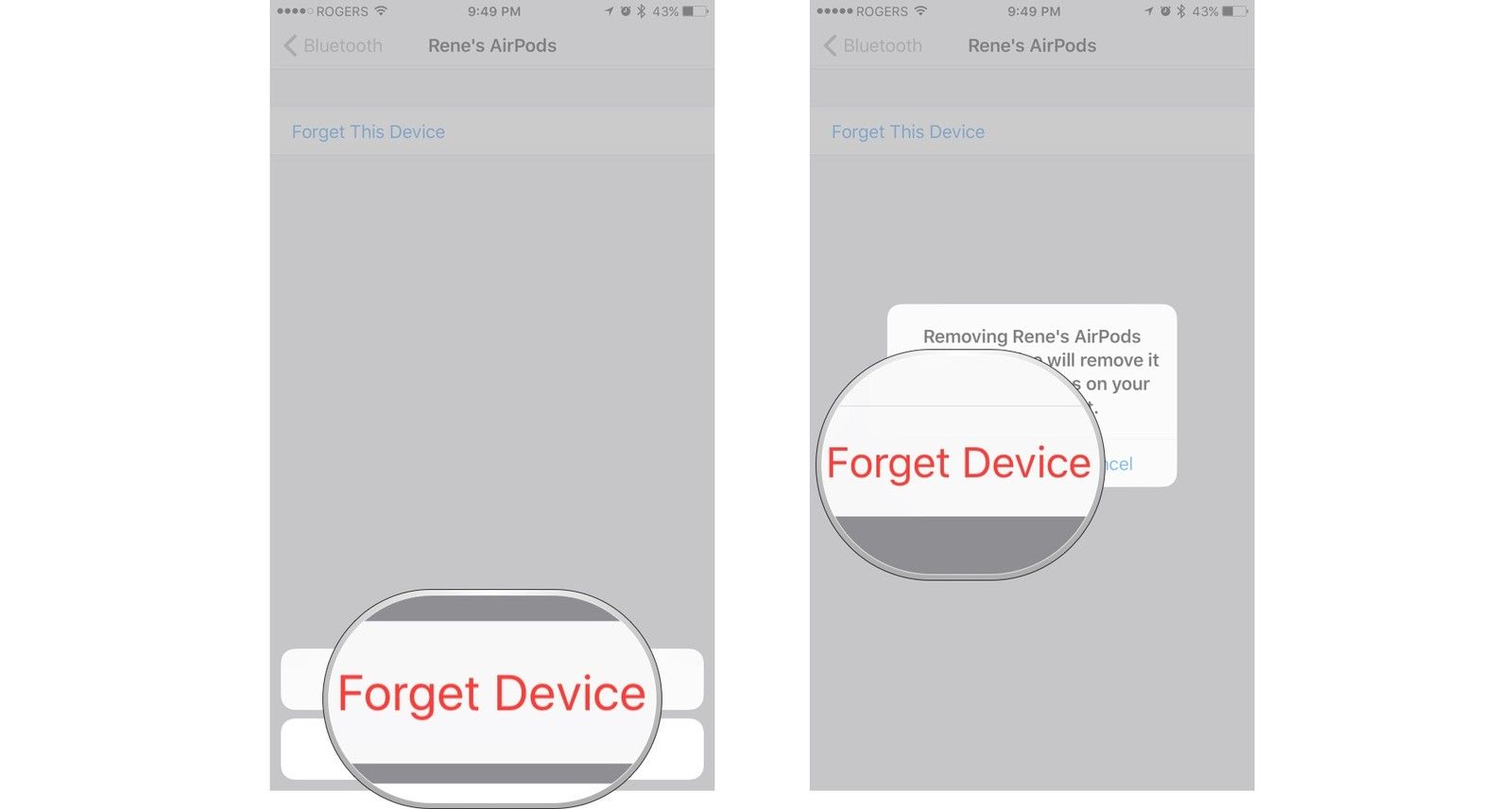 Нажмите Забыть устройство чтобы подтвердить.