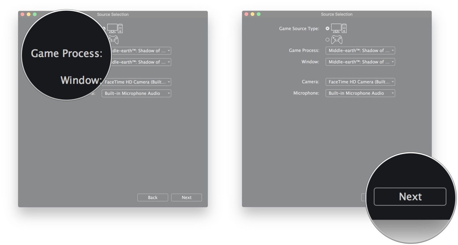 - Начать игра, которую вы хотите транслировать. В этом случае мы используем Средиземье: Тень Мордора транслировать.