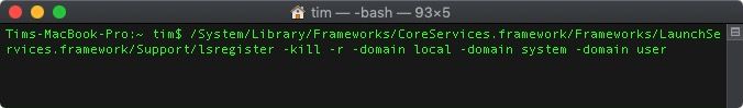 LaunchServices.framework / Support / lsregister -kill -r -domain local -domain system -domain пользователь