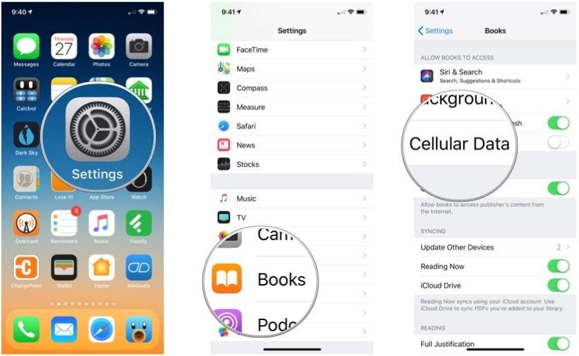 Вы получаете сообщение об ошибке при попытке просмотреть Книжный магазин или перезагружаете книгу, хранящуюся в iCloud, в своей библиотеке? Возможно, на вашем iPhone или iPad отключены данные сотовой связи. Если ваше устройство не находится в сети Wi-Fi, сотовые данные должны быть включены для загрузки книги.