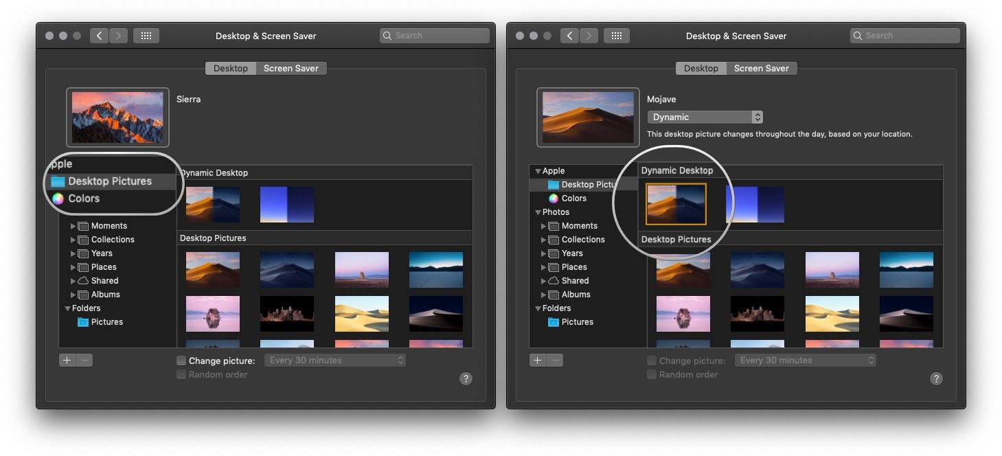 Выберите Динамические обои Вы хотели бы использовать. Они расположены под заголовком Dynamic Wallpapers. Есть два варианта: Мохаве и Солнечные градиенты.