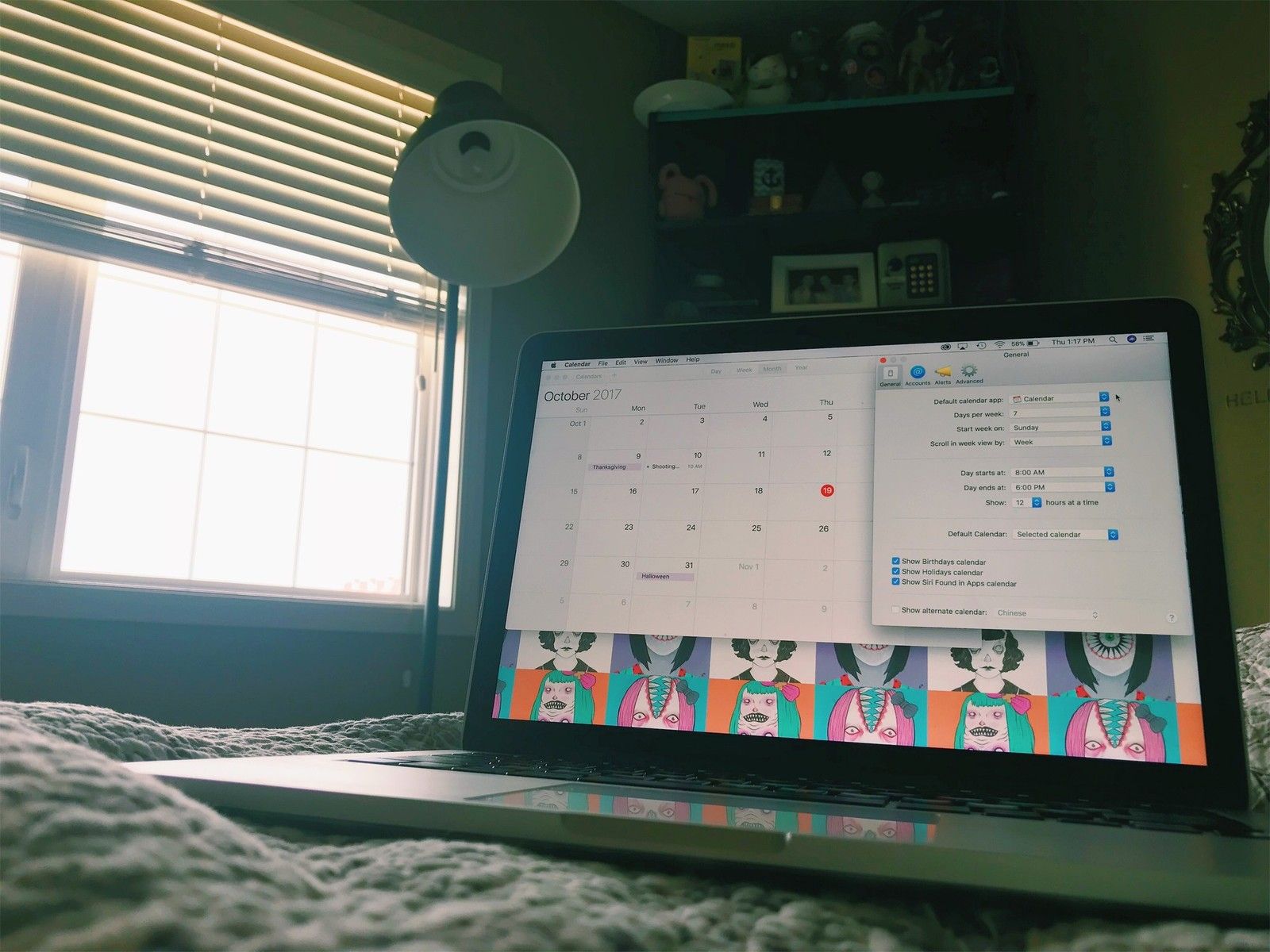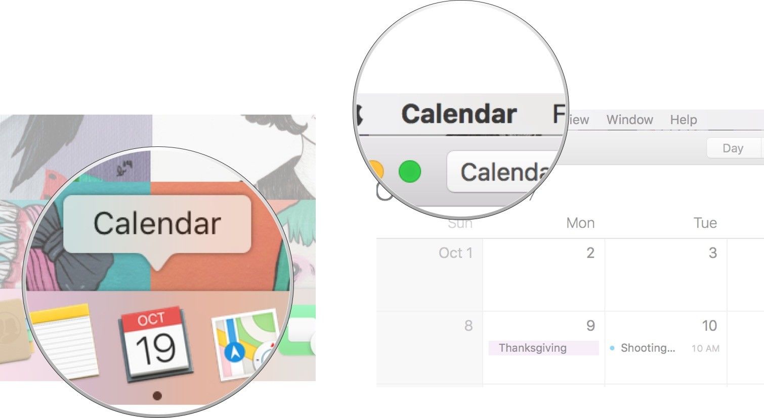 Нажмите Календарь в строке меню в левом верхнем углу экрана.