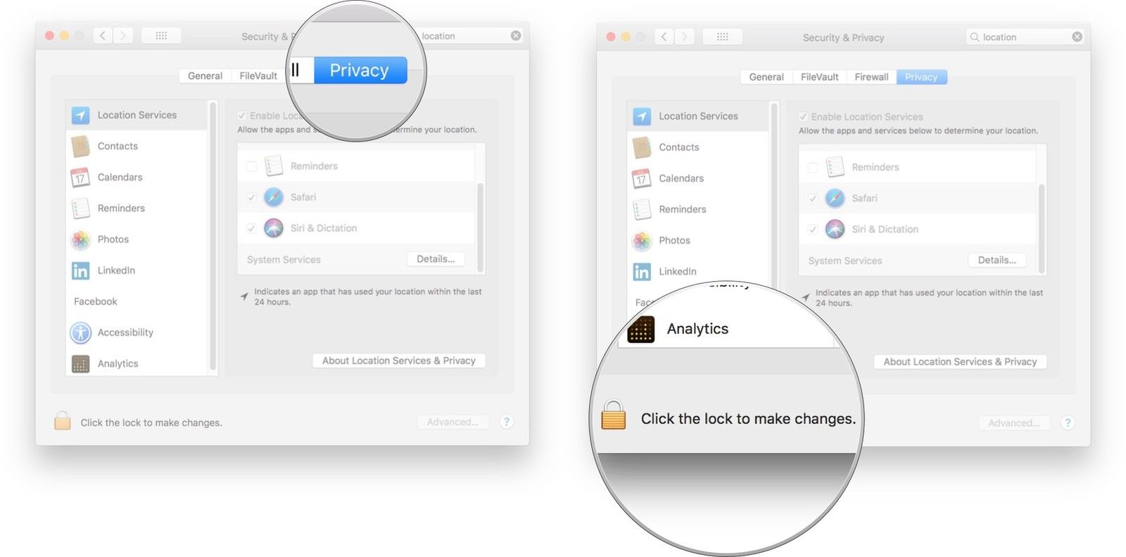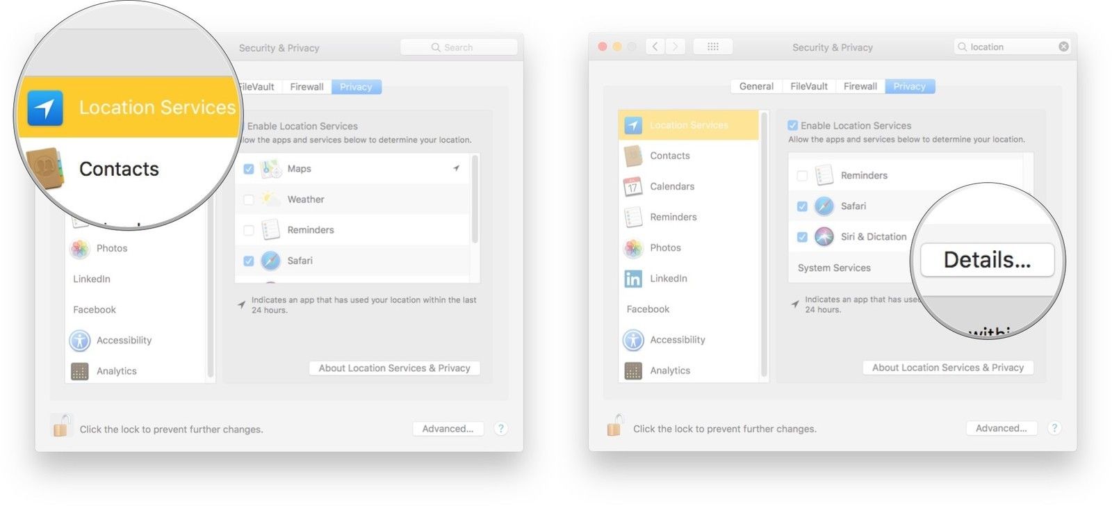 - Нажмите Сервисы определения местоположения из левого бокового меню.