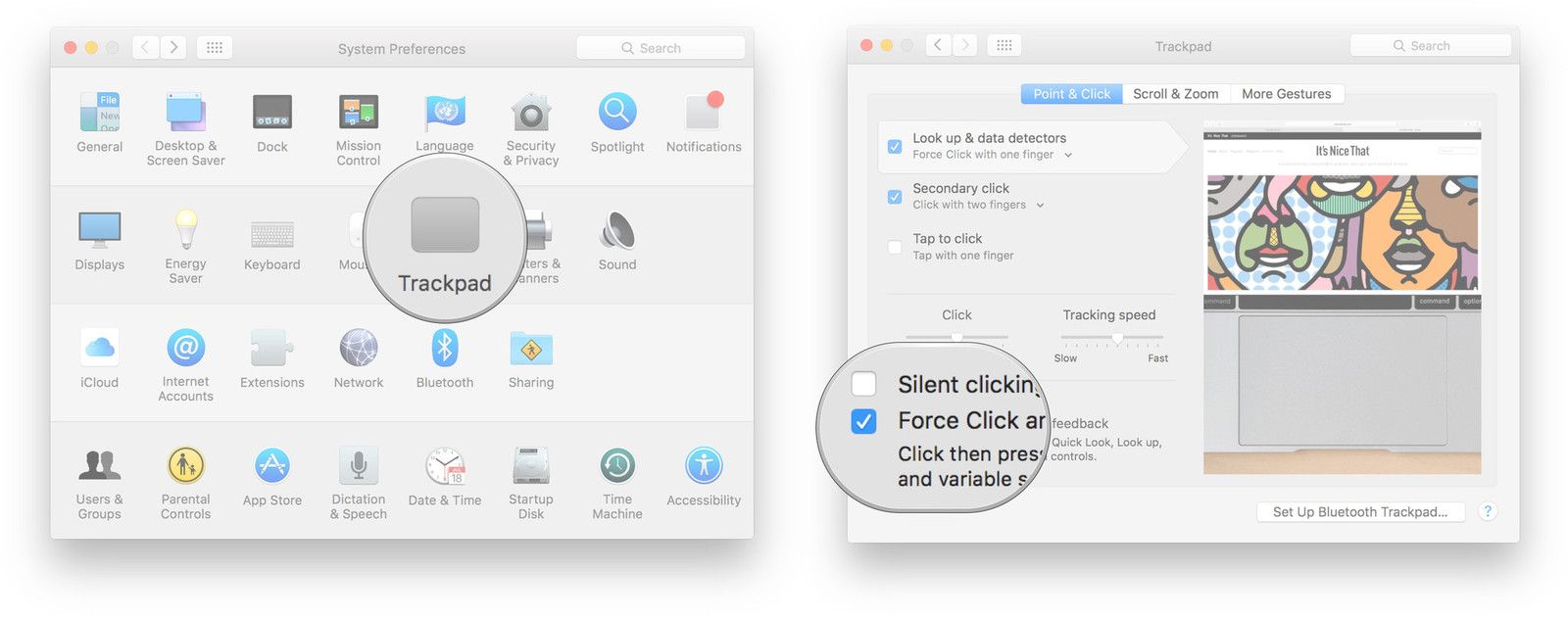 С помощью Force Click вы можете делать все, от запуска Quick Look до Look Up, предварительного просмотра карт и веб-сайтов и многого другого. Если вам нравится, как он работает и чувствует, он включен по умолчанию, и вы можете оставить его таким. Однако, если вы предпочитаете отключить его и использовать трекпад Force Touch, похожий на традиционный трекпад, вы можете легко это сделать. И если позже вы передумаете, вы можете снова включить его.