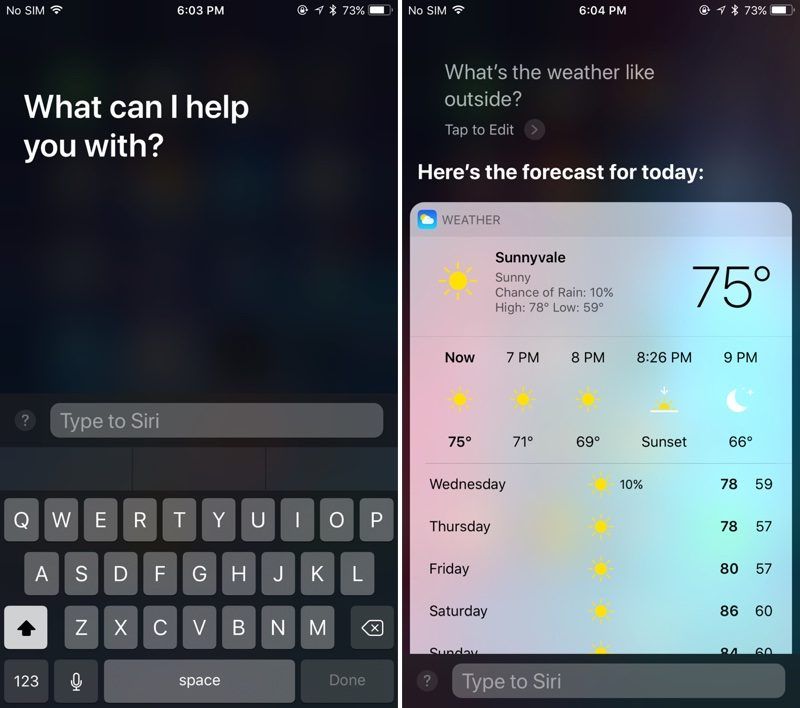 Если включен параметр «Тип» для «Siri», при нажатии кнопки «Домой» (или боковой кнопки, если на устройстве нет кнопки «Домой») для активации «Сири» открывается клавиатура и появляется возможность ввести команду для «Сири». Типичные команды «Сири» работают так же, как и разговорные команды «Сири» — «Сири» ответит на вопросы типа «Какая погода?» или «Какие фильмы играют рядом?»