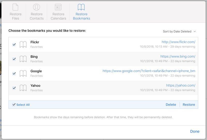 Наряду с контактами и календарями Apple регулярно создает резервные копии закладок, которые вы удалили из списка закладок в Safari.