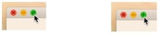 Строка меню открытых окон в OS X содержит три кнопки в верхнем левом углу: красная кнопка, желтая кнопка и зеленая кнопка. При нажатии на красную кнопку окно закрывается. нажатие на желтую кнопку заставляет окно свернуться (окно сжимается в док-станцию). Начиная с OS X Yosemite, нажатие зеленой кнопки вызывает полноэкранный режим.