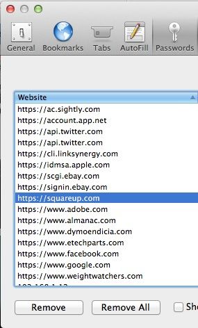 - Отсюда вы увидите список всех паролей, которые вы в настоящее время храните в Safari. Просто выберите тот, который вы хотите удалить. Чтобы выбрать несколько элементов, просто нажмите и удерживайте команда на вашей клавиатуре.