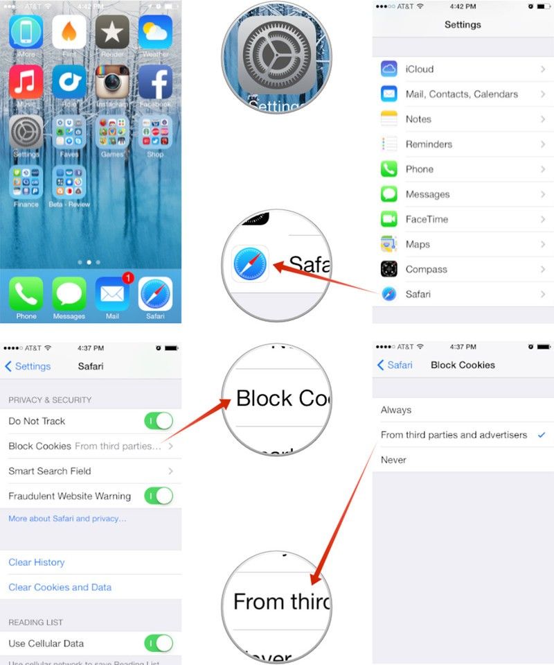 Как заблокировать куки в iOS 7 Safari