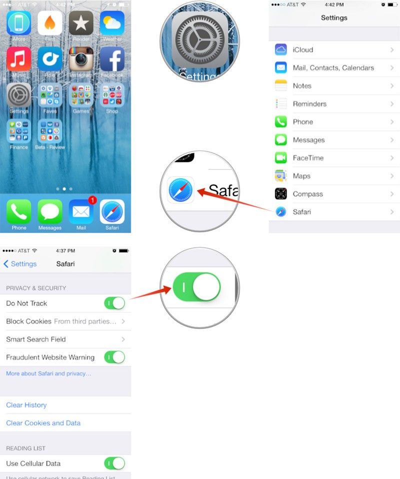 Как включить функцию «Не отслеживать» в iOS 7 Safari