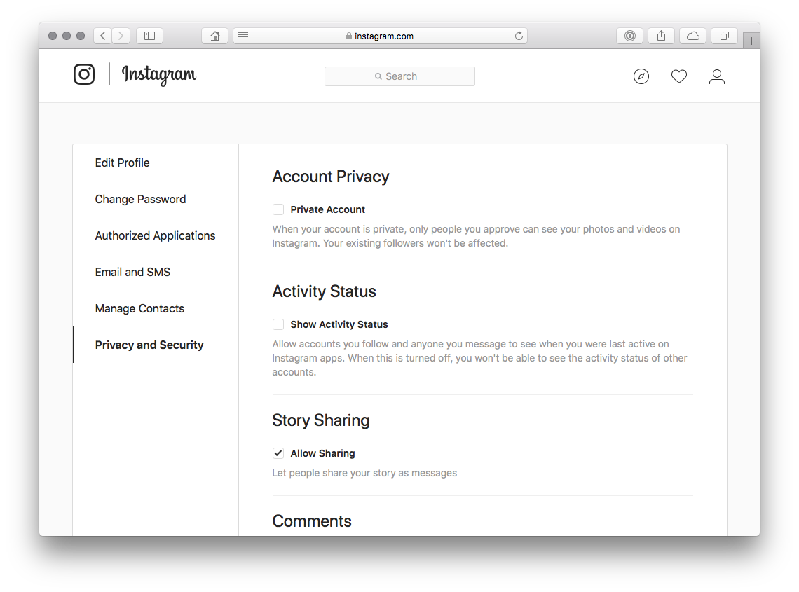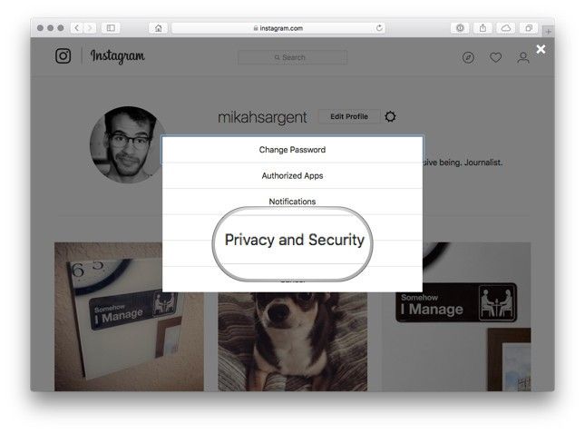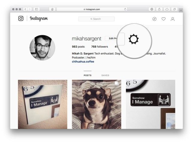 - Голова к вашему Профиль в Instagram в вашем любимом веб-браузере.