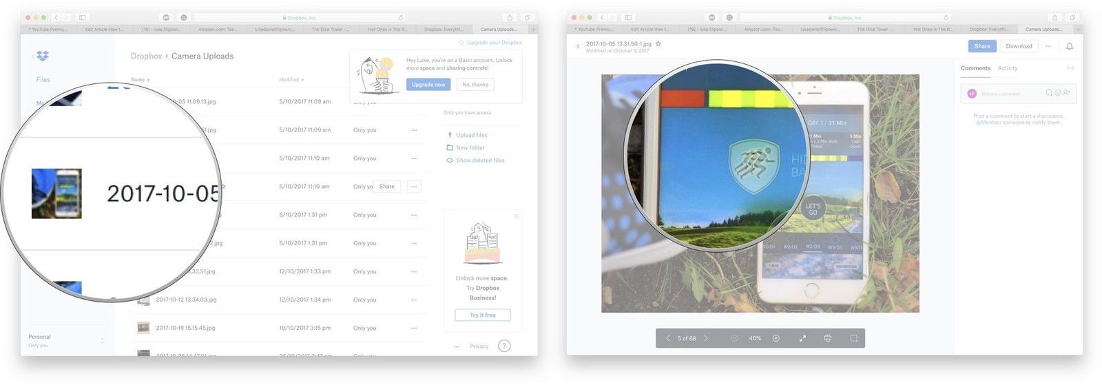 2, Войти в ваш аккаунт Dropbox если вы еще этого не сделали - Нажмите Фото Вы хотите загрузить на свой Mac. В зависимости от того, как вы настроили свой Dropbox, вам может понадобиться просмотреть некоторые папки.