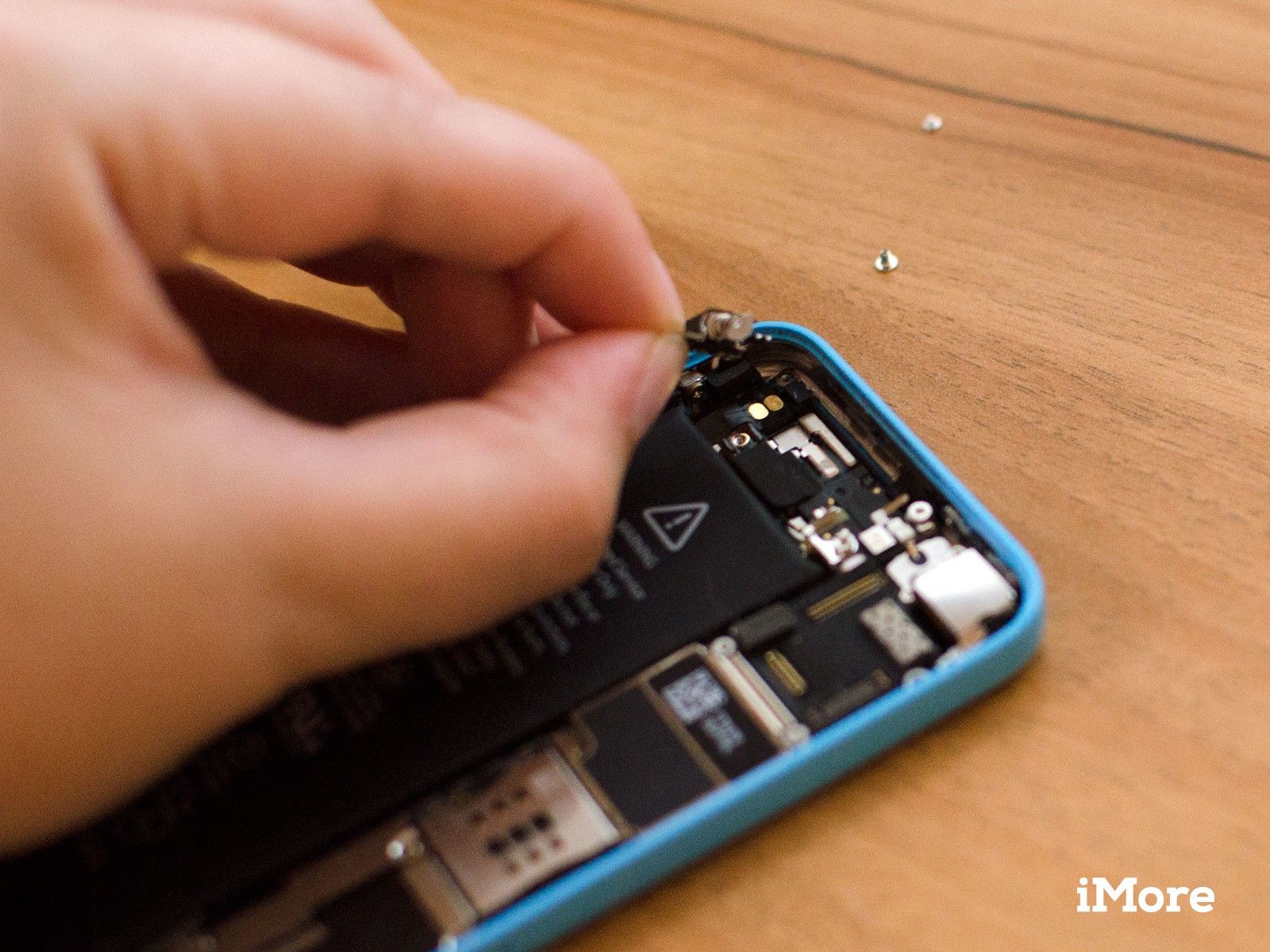 Нам не нужно полностью извлекать батарею, чтобы заменить вибратор в сборе, но всегда полезно отсоединять батарею перед удалением любых других внутренних компонентов, чтобы предотвратить короткое замыкание.