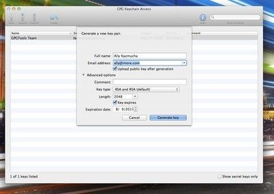 - Обратитесь к скриншоту ниже, чтобы увидеть настройки для создания нового безопасного ключа. Вы можете изменить такие вещи, как данные об истечении срока действия ключа и т. Д. Обязательно установите флажок для Загрузить открытый ключ после генерации под выбранным адресом электронной почты, для которого вы хотите сгенерировать ключ.