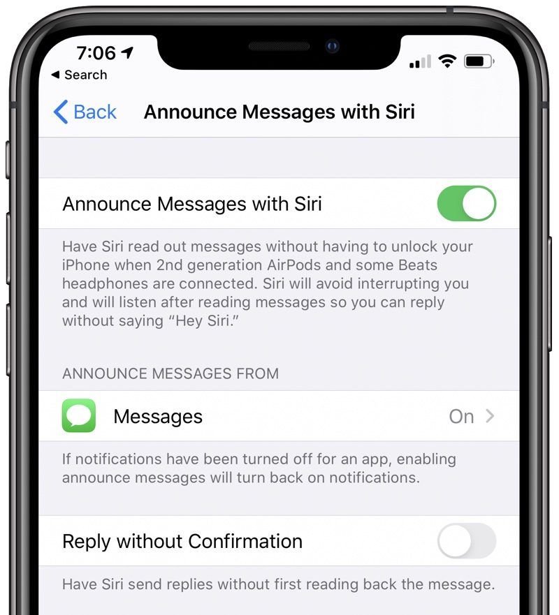 В iOS 13.2 Apple представила Announce Messages с Siri, новой функцией iPhone, которая позволяет слушать и отвечать на входящие текстовые сообщения, когда вы носите подключенные наушники AirPods или Powerbeats Pro.