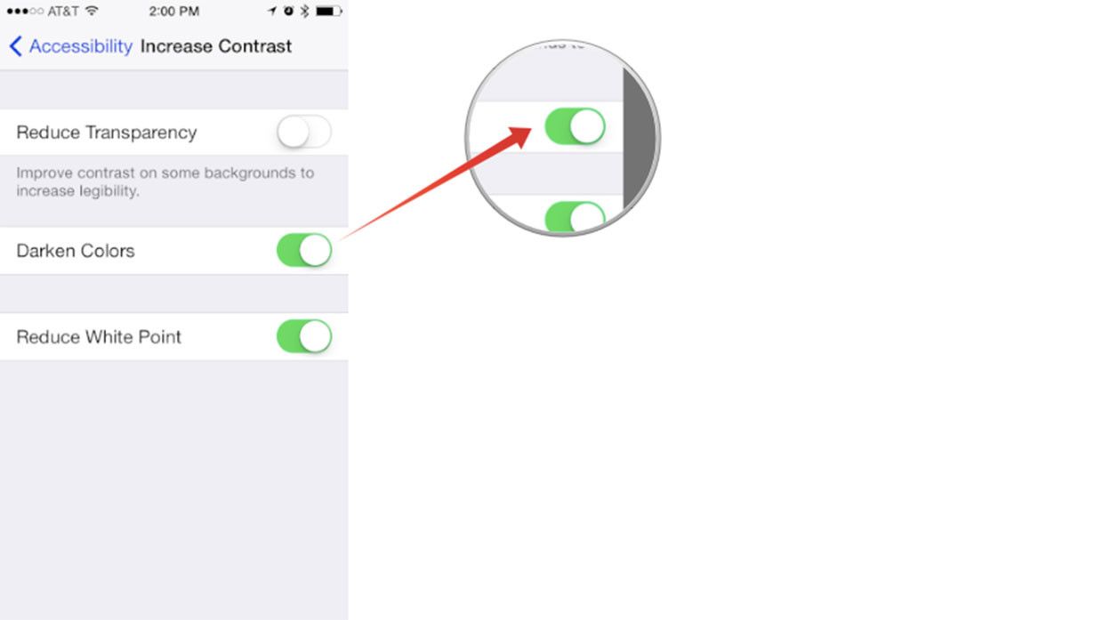 Как улучшить видимость шрифта и меню с помощью опции темных цветов в iOS 7.1