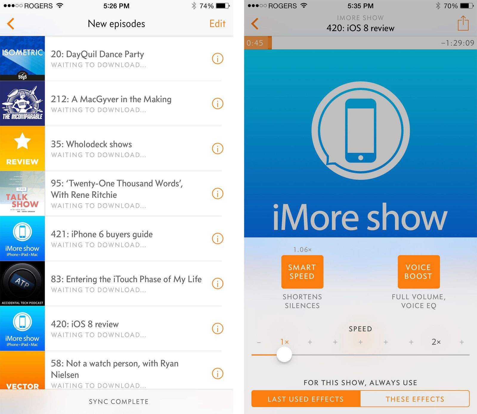 Overcast — красивое и интуитивно понятное приложение для подкастов от Marco Arment, создателя Instapaper. В нем может быть не так много наворотов, как в некоторых других приложениях для подкастов, но пользовательский интерфейс не имеет себе равных, в том числе на iPhone 6 и 6 Plus. Если вам нужен визуально привлекательный вид, вам определенно стоит взять Overcast на тест-драйв.