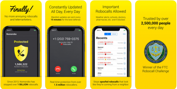 Nomorobo — самое простое приложение среди всех других приложений, блокирующих робокалл. Это также одно из старейших приложений robocall и одно из самых простых. Приложение блокирует более 650 000 робокеров, мошенников и телемаркетеров. Важно отметить, что Nomorobo никогда не получит доступ к вашим звонкам или вашим контактам.