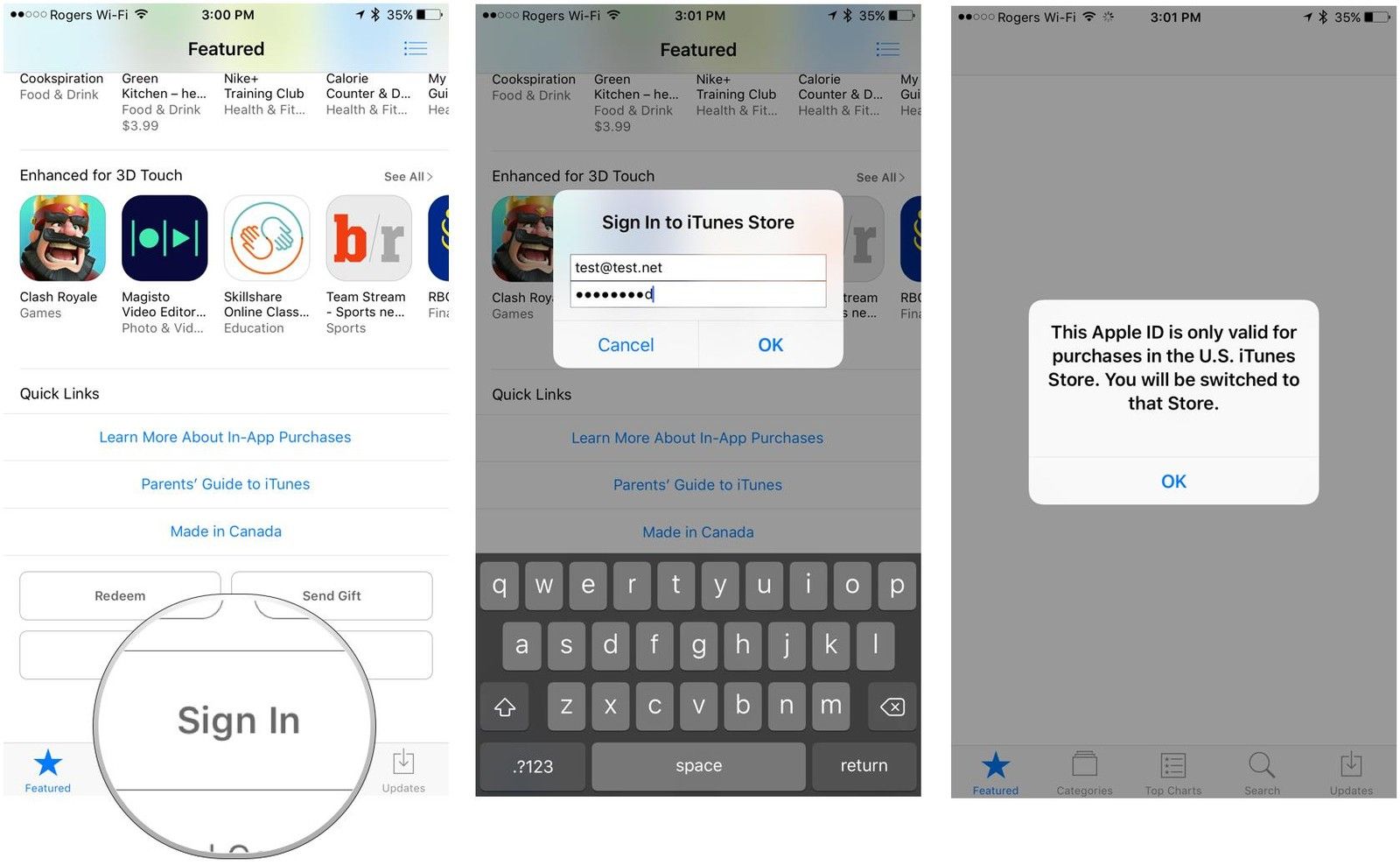 Нажмите Хорошо когда будет предложено сменить расположение App Store.