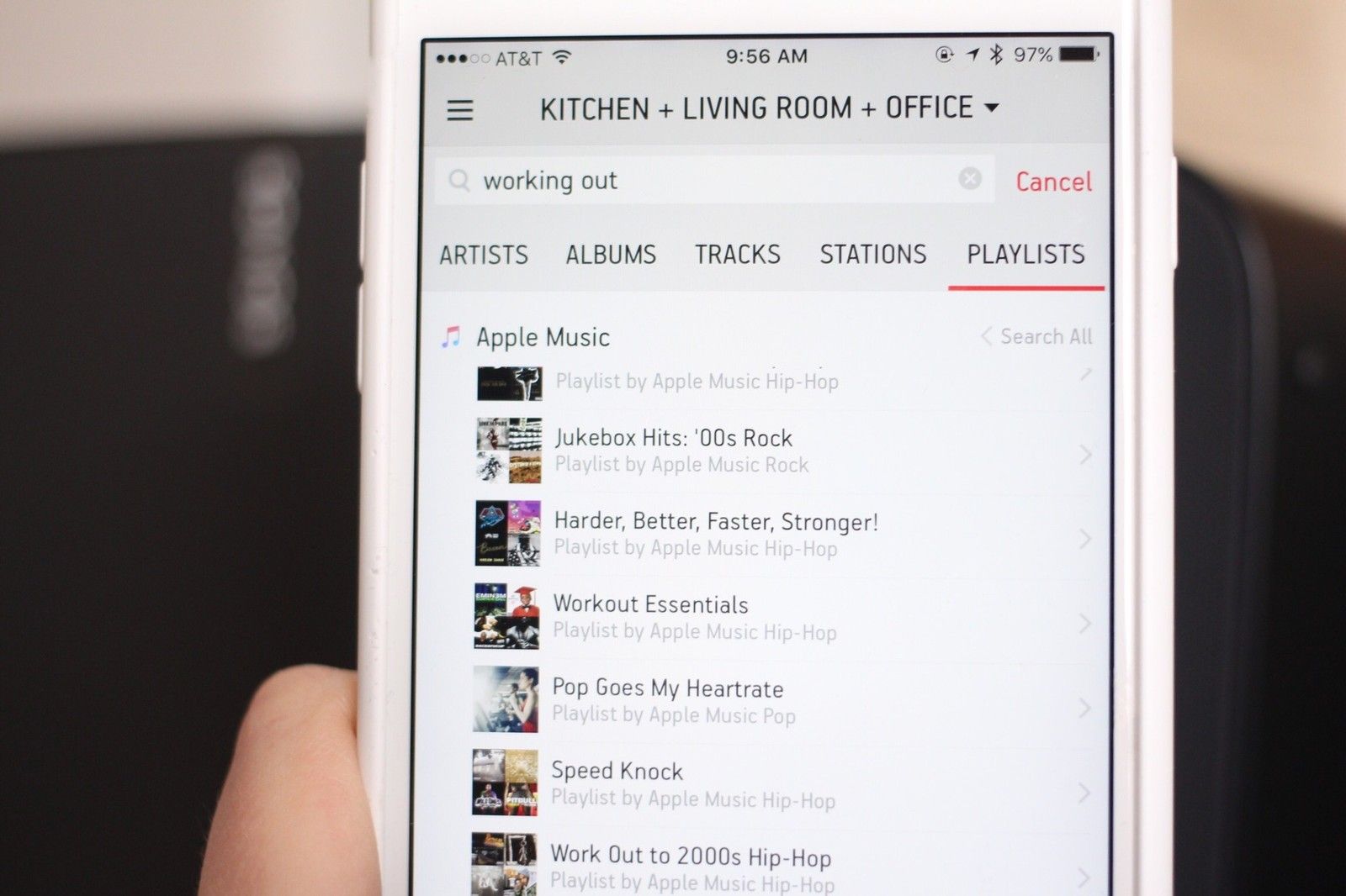 Универсальная система поиска и очереди Sonos также является огромным преимуществом: вы можете не только искать и добавлять треки из нескольких служб, но и автоматически ограничивать поиск в определенной области Apple Music. Это отличный способ найти целевые плейлисты; просто выберите раздел списка поиска в Search и введите ключевое слово, такое как «working» или «mountain goats», чтобы найти все списки воспроизведения, связанные с вашим запросом.