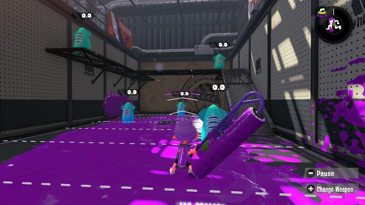Чтобы избежать угрызений совести покупателя, нажмите Кнопка Y в то время как в магазине, чтобы проверить все оружие, доступное для покупки. Это перенесет вас в «зону разбрызгивания» с фиктивными целями и новым уровнем, чтобы вы могли распространять чернила повсюду.