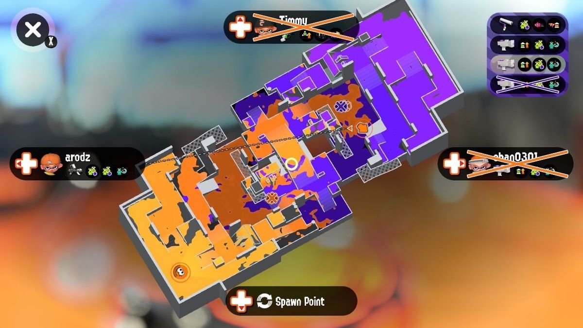 Когда вы играете в Turf War, очень важно знать, где враг обрызгал свои чернила, чтобы вы могли выбрать лучшее место для атаки. Один из лучших способов получить участок земли — вызвать экранную карту, нажав Кнопка X.
