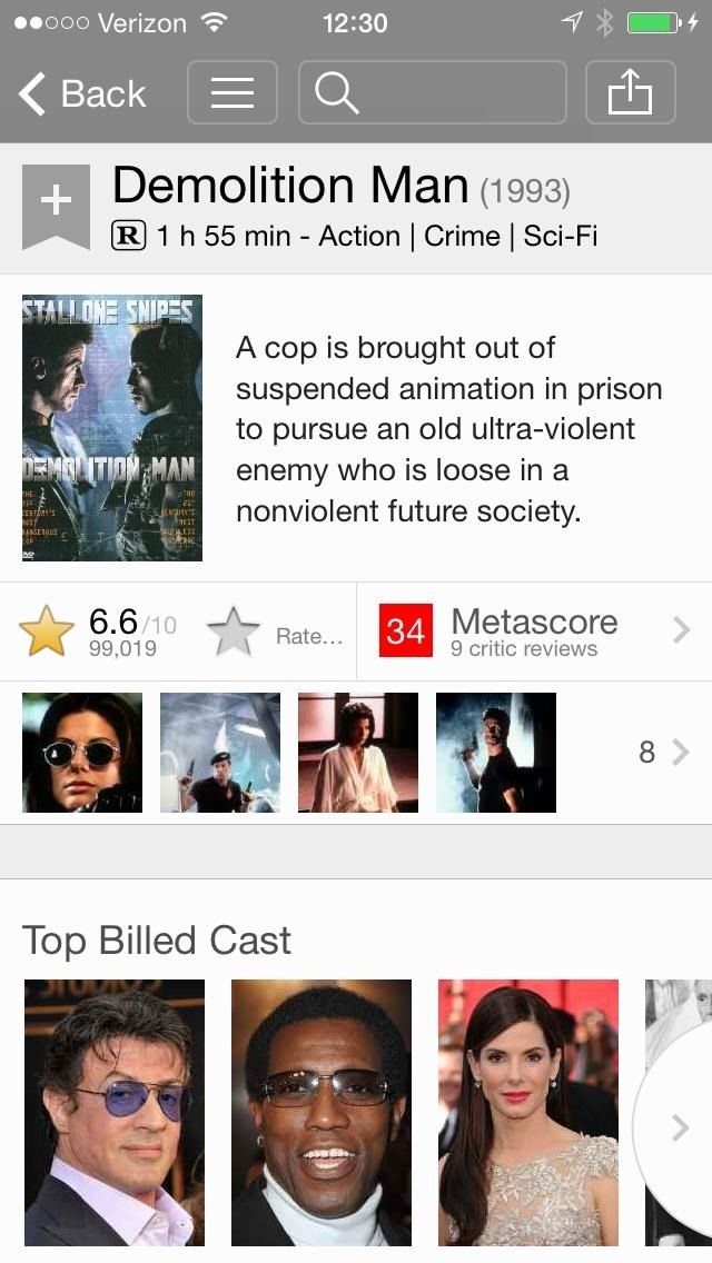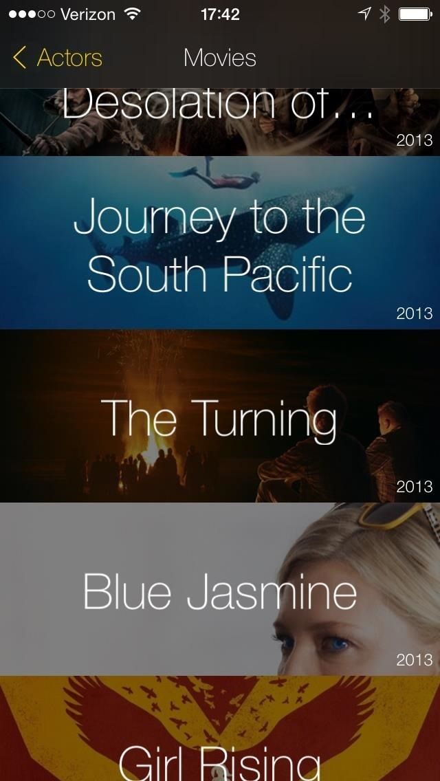 Помимо функциональности, небольшая часть того, что делает этот фильм таким увлекательным, — это его красивый дизайн. Это просто и элегантно. Вы можете даже найти одного актера по всему списку, проведя пальцем вправо на одного актера, а затем проведя пальцем влево, чтобы показать фильм о оставшемся актере.