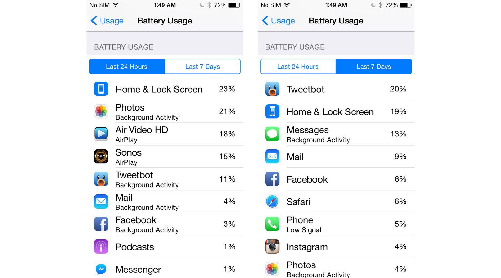 Опять же, если Tweetbot или Twitterrific находятся на вершине, и вы провели большую часть дня в твиттере, у вас нет проблем. Если Hangouts или Facebook находятся на вершине, и вы едва открывали их весь день, то благодаря использованию батареи у вас есть потенциальное решение!