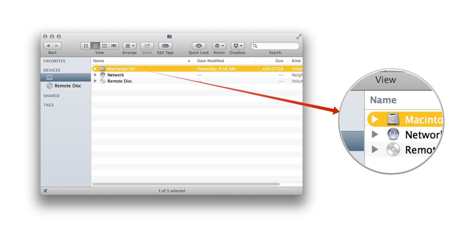 - открыто Macintosh HD (или как бы ни назывался жесткий диск вашего Mac)